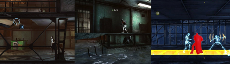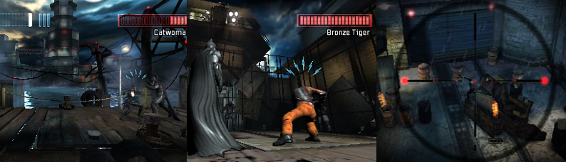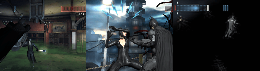 In a change of pace for this series, you go one-on-one with the Joker in Arkham Origins Blackgate, to a degree. You fight him in a small, enclosed space where his minions toss grenades and the Joker races around a central obstacle, smacking you with an electrical baton whenever you get close. Accordingly, you must run in the opposite direction and time your Line Launcher to fly in and land a combo, but he’ll also take shots with his pistol, floods the arena with poisonous gas, and has the largest health bar of any boss so far. However, he’s a walk in the park compared to the final boss, initially teased as another tedious fight against Bane but which turns out to be an infuriating three-stage fight against Catwoman, of all people. Before you fight her, you’re forced to search all over finding and defusing bombs before you battle her in the same format as in the first encounter, except she’s added Bronze Tiger’s leap to her arsenal and trying to counter her claw swipes is even more difficult. After this, she blinds Batman and strikes from the darkness; your only cue to when she’ll attack is the brief glow of her goggles and a little jingle, meaning it’s way too easy to miss-time your counter and get hit. Survive this phase and she appears to duplicate, with her doubles feigning attacks and the true Catwoman striking so quickly and so awkwardly that it’s near impossible to correctly time your counters as you need to press Y slightly before the indicator appears. Oh, and you need to repeat this last phase three times, with the fakes and attacks increasing each time, making for the most irritating boss battle in the franchise since that God-awful fight with Slade Wilson/Deathstroke!