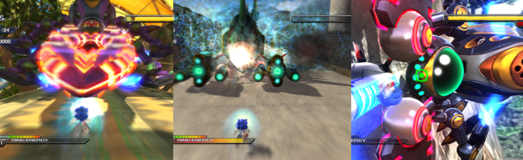 Although Dr. Eggman is defeated, Dark Gaia rises from the planet’s core so Chip, finally remembering his true purposes as Light Gaia, causes all of the Gaia Temples to come together as the titanic Gaia Colossus and engage with his dark counterpart one-on-one. To do this, you need to hold X to boost the slow, clunky ass of the Dark Colossus towards the beast, guarding against or desperately trying to punch the flaming boulders it sends your way. When Dark Gaia charges up its big energy beam, try to move out of the way but for God’s sake put your guard up as it can instantly drain all of your health otherwise! Once you get close enough, you’ll have to perform another QTE and then you’ll switch to Sonic and be given a few seconds to race past Dark Gaia’s deadly tentacles and energy blasts and bash it in the eye (again, after completing a QTE). This must then be repeated twice more, with Dark Gaia’s attacks and ferocity growing each time; thankfully, your health is restored for each phase of the battle and you don’t have to restart right from the beginning if you die but this is still one of the more frustrating parts of the game. Dark Gaia isn’t so easily defeated, though, and mutates into the gruesome Perfect Dark Gaia. Of course, Sonic uses the Chaos Emeralds to transform into Super Sonic for the final battle of the game. Unlike other Super Sonic levels, you don’t have to worry about a time limit as your Rings aren’t depleted over time. Instead, you must fly/boost towards Perfect Dark Gaia, who has encased itself in an impenetrable shield, collecting Rings to fill up your health bar and dodging asteroids. While the Gaia Colossus distracts the creature, Super Sonic must fly around the shield avoiding obstacles, flaming meteors, and that same massive energy beam to attack the snake-lake tentacles that poke out sporadically through the barrier. This is easier said than done, though, as it’s really hard to see where you’re going or target the heads (there’s no aiming reticule this time); there are also no extra Rings to get and it’s ridiculously easy to get hit by Perfect Dark Gaia’s attacks or ram into an asteroid and deplete your health bar. Once you do finally destroy all of the heads, you’ll of course have to complete one last massive QTE sequence but, as long as you hit the right buttons and mash them into oblivion, you’ll finally destroy the beast and return the planet to normal.