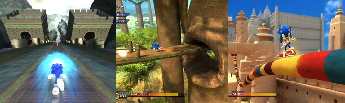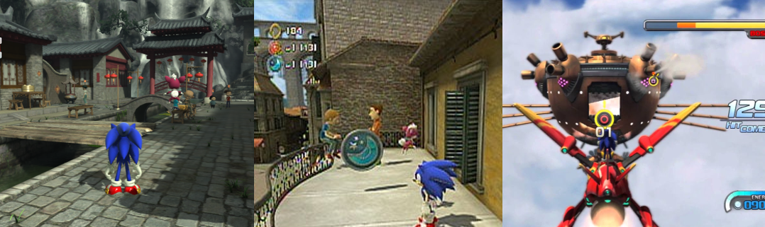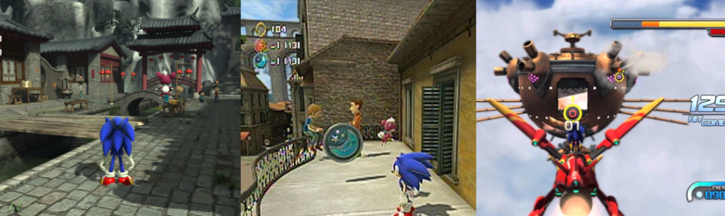 Gameplay: Sonic Unleashed is a 3D action/platformer that switches to both a 2.5D perspective and a third-person brawler during your progression through the main story. Very similar to Sonic Adventure (Sonic Team, 1998), Sonic navigates a variety of hub worlds across the globe, talking with non-playable characters (NPCs) and performing a number of challenges and side quests in his quest to activate the seven Gaia temples (and the Chaos Emeralds) to restore the splintered planet.